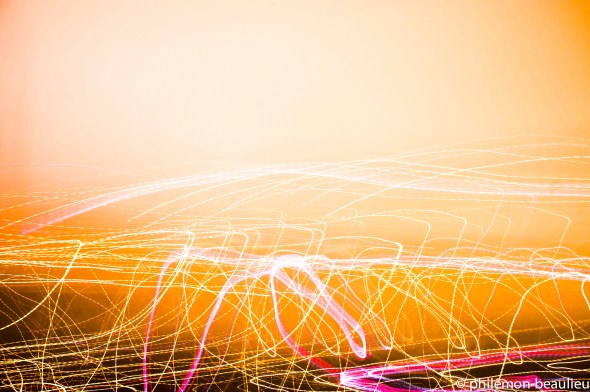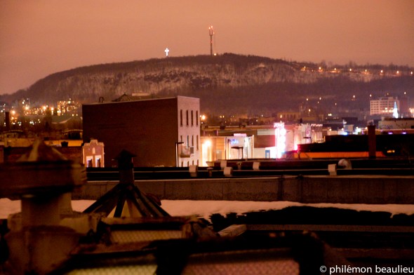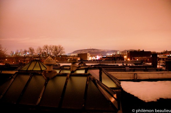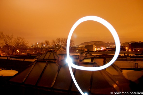 Hier, après la manifestation, des amis et moi sommes allé chez un ami qui habite sur la rue Mont-Royal. Étant d’un naturel curieux, j’ai découvert qu’il y avait un escalier qui menait au toit de la maison. J’y suis donc monté et je suis allé faire des photos. J’ai photographié la vue que l’on avait à partir du toit et j’en ai profité pour faire un peu de light painting.