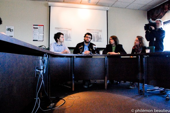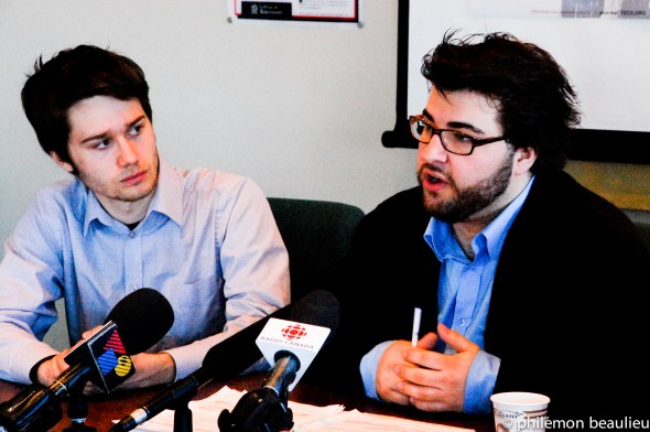 Le président de la FECQ, Léo Bureau-Blouin et le recherchiste de la FECQ, Julien Boucher