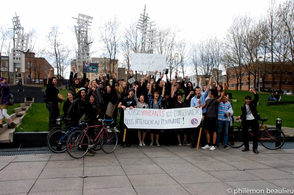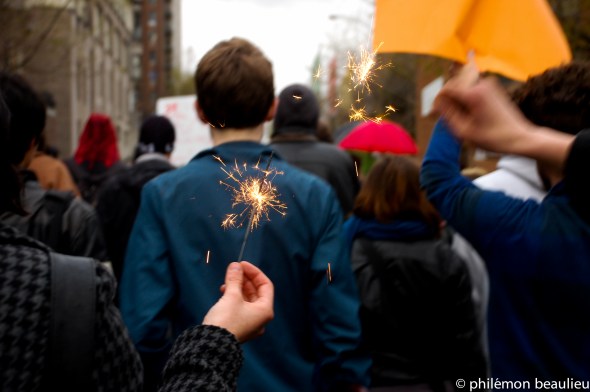 Il y a d’abord eu une manifestation qui a été appelé pour le mardi à minuit, juste après l’annonce d’un gouvernement majoritaire de Stephen Harper. Malheureusement, je n’ai pas pu y être. Par la suite, les même organisateurs en ont remis et ont organisé une manifestation ce mercredi à la place Émilie-Gamelin.