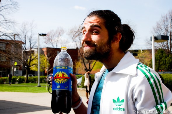 Marc-Antoine Bergeron qui trippe fort en buvant du Sélecto, une boisson gazeuse arabe.