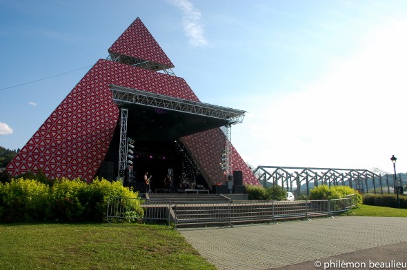 Voici la pyramide des Ha-Ha. Cet après-mid là, un groupe, qui reprenait des succès de vieux rock à la guitare acoustique, y jouait.