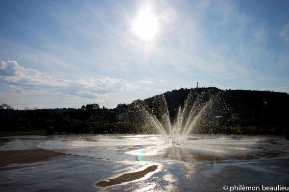 La fontaine devant la pyramide des Ha-Ha.