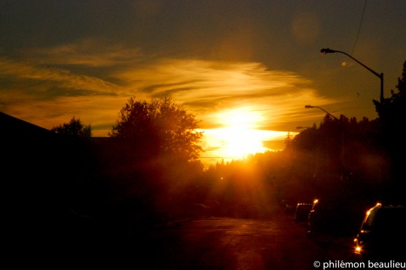 Mercredi soir, je suis sorti du cégep assez tard et j’ai eu la chance d’observer un très beau coucher de soleil.