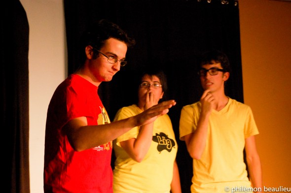 Hier soir, s’est tenu au cégep de Jonquière le 2e match officiel de la LIG. Il m’a été impossible d’assister au premier match mais j’ai pu assister il y a 3 semaines au match des anciens. Rappelons que le thème du match d’hier était « J’aime les gros popotins ».