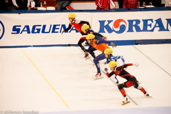 Aujourd’hui, c’était la dernière journée de la coupe du monde de patinage de vitesse courte piste à Saguenay.