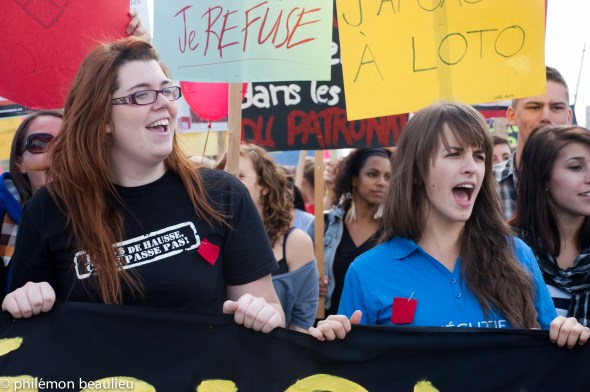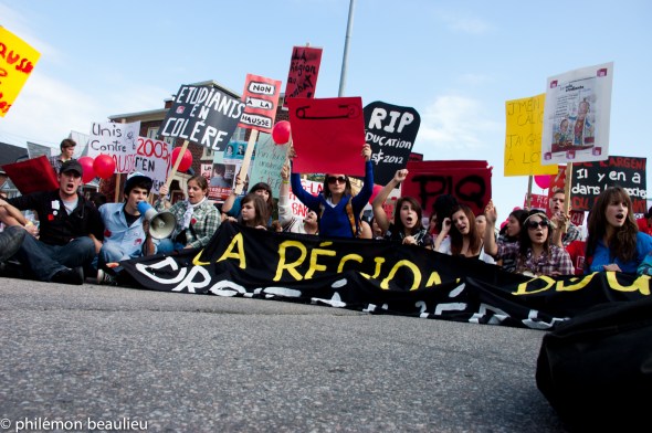 Mercredi dernier, dans les rues de Jonquière, s’est tenu la manifestation régionale contre la hausse de frais de scolarité du Saguenay-Lac-Saint-Jean. Pour l’occasion, les étudiants des cégeps de Saint-Félicien, d’alma et de Jonquière se sont votés une levée de cours pour aller manifester.
