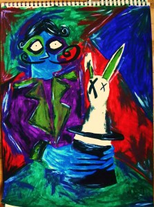 La peinture est pour moi une façon de me vider un peu la tête, et hier c’est un magicien bleu qui en est sortit. Je me suis bien amusée à la réaliser.