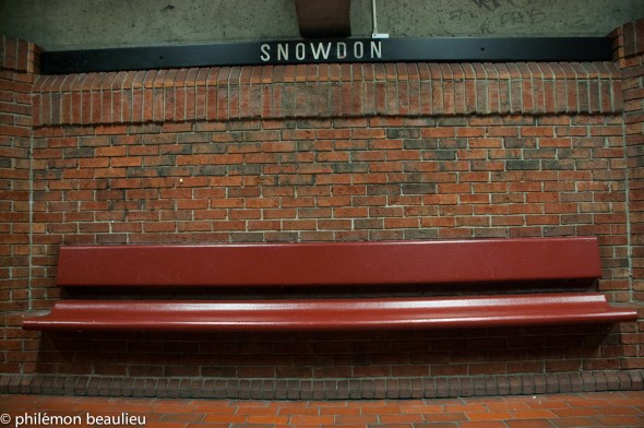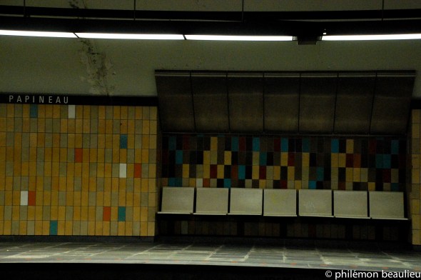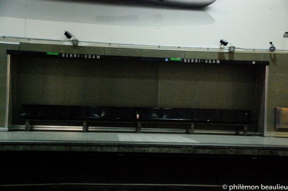 À Montréal, il y a un métro. Or, il s’avère que les stations du métro de Montréal, contrairement à beaucoup de réseau de métro dans le monde, sont très différente les unes des autres. Pour représenter ces énormes différences, j’ai décidé de photographier un élément qui se retrouve dans toute les stations du réseau montréalais, les bancs. Au fil de mes promenades en métro, je vais donc prendre des photos des bancs des stations. Malheureusement pour vous, vu que je m’en vais vivre à Jonquière dans les prochaines années, je ne vais que pouvoir prendre des photos de banc de métro de façon sporadique.