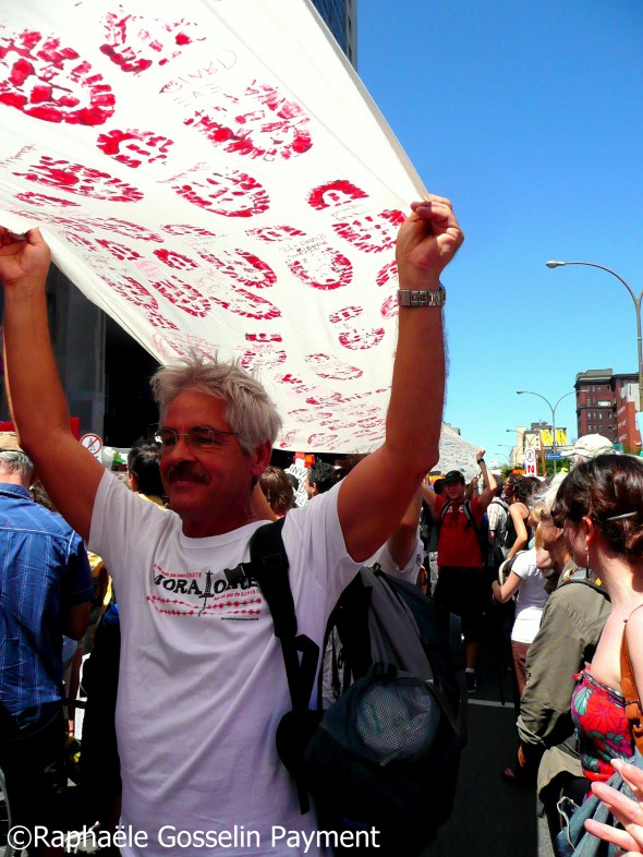 Dans la foulée, nous avons retrouvé quelques-uns de nos compagnons de la marche pour le «Moratoire d’une génération» qui ont fait le chemin pour donner un appui supplémentaire à cette manifestation et rallier tout le monde pour la suite des évènements, dont l’arrivée de la marche à Québec en fin de semaine.